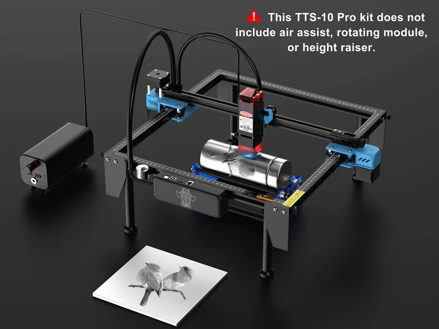 TTS-55 uses the latest 5.5W laser beam shaping technology diode laser, it has an ultra-fine 0.08mm sharp laser focus, with super cutting penetration and precision, can cut up to 8mm thick wood, 5mm acrylic, carve ceramics and stainless steel.