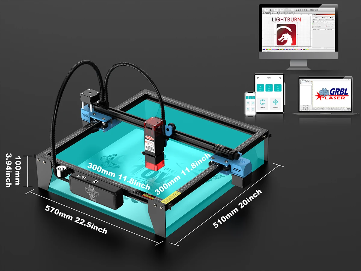 Support mobile APP control, wifi connection, USB connection, offline USE,The machine is compatible with various mature engraving software, such as LaserGRBL, LightBurn, Benbox, GrblController, LiteFire, supports PWM mode engraving, supports Windows Mac system, and engraving file format Support JPG, PNG, DXF, SVG, G-code, NC, BMP, etc.