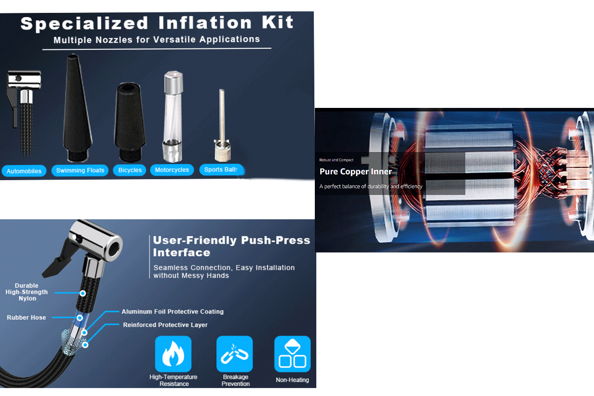 Car Jump Starter FunctionIn: Addition to its tire inflator feature, this product also functions as a car jump starter, providing a convenient solution for dead batteries on the go.