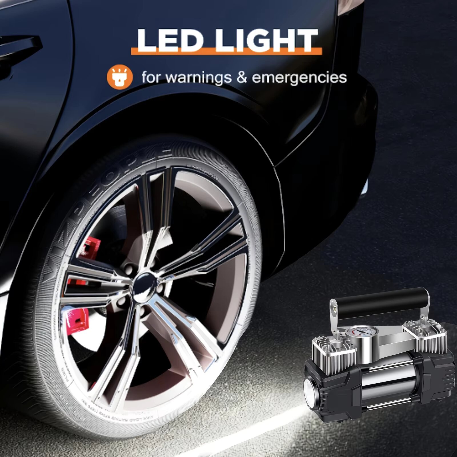 Dual Pump Air Compressor: Equipped with a dual pump air compressor, this jump starter ensures quick and efficient inflation for car, motorcycle, bicycle, and ball tires.